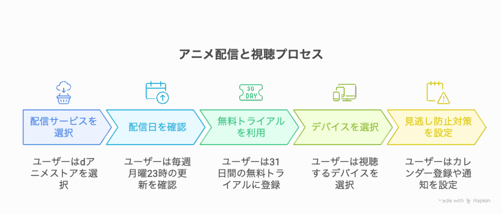 今後の配信スケジュールも随時更新されるため、dアニメストアの公式サイトやアプリのチェックを欠かさずにしておくと安心です。