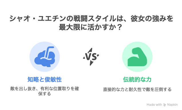 知略と俊敏性を活かした戦い方が彼女の強さの源であり、視聴者を魅了する要素の一つです。